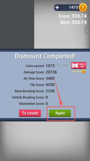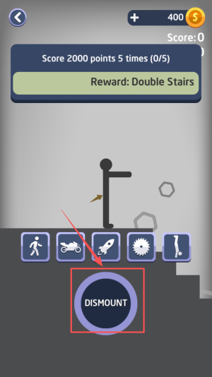 3、完成目标:在Score:o界面点击DISMOUNT开始坠落。