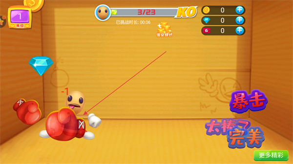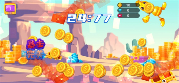 2、控制角色攻击,触发暴击效果,收集钻石等道具。