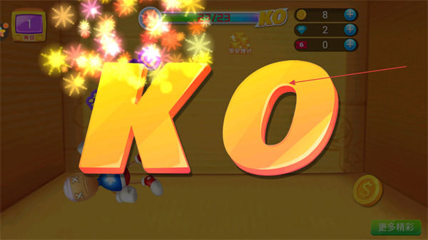 4、击败对手后触发KO特效,完成本轮关卡挑战。