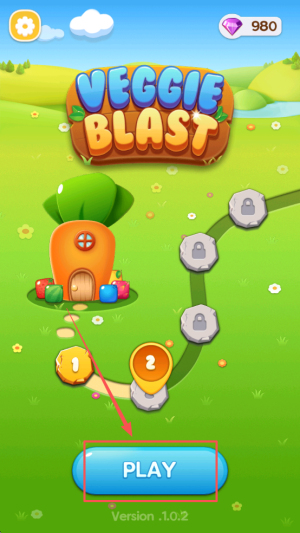 1、启动游戏:在980 VEGGIE BLAST PLAY界面点击PLAY。