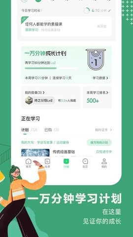 内置兴趣小组、话题广场等板块,用户可加入小组与学友监督打卡、记录学习进度,或参与课程讨论交流心得。