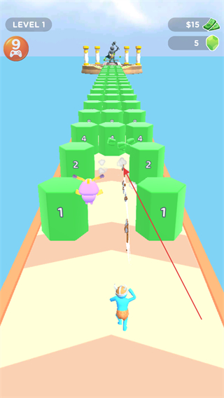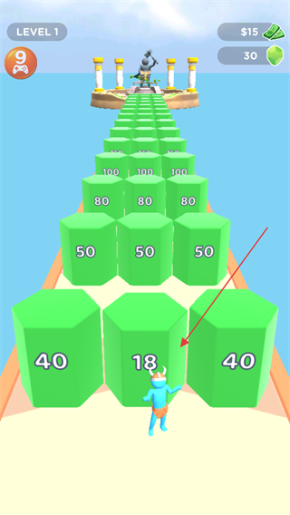 4、继续前进收集更高数值的方块,向终点目标推进。