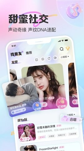 3、依托智能算法和声音技术,结合用户的兴趣标签、聊天习惯等,为你精准推送你感情兴趣的交友对象。
