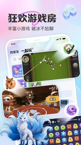 内置真心话大冒险、你画我猜、骰子手游等十余种互动小手游,还有点唱特色互动形式,让交友更有情趣。