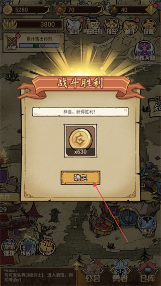 4、对决胜利后,获得x630金币奖励,点击确定关闭界面,继续游戏。
