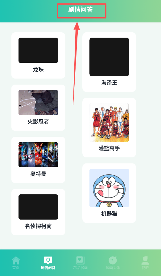 3、在剧情问答部分,你会发现许多熟悉的动漫角色,比如机器猫和灌篮高手。这个区域可能用于剧情测试或粉丝讨论。