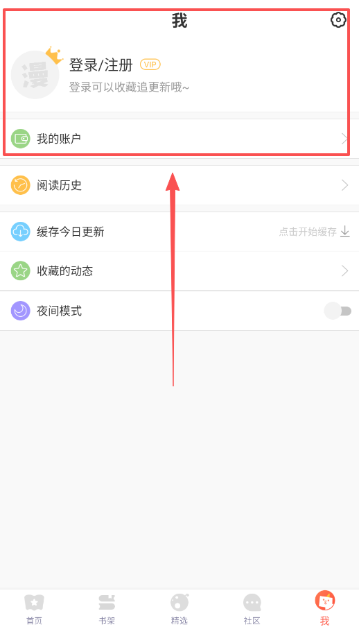 4、最后记得点击我页面完成登录或注册,只有登录后你的书架收藏和阅读记录才会被保存下来。