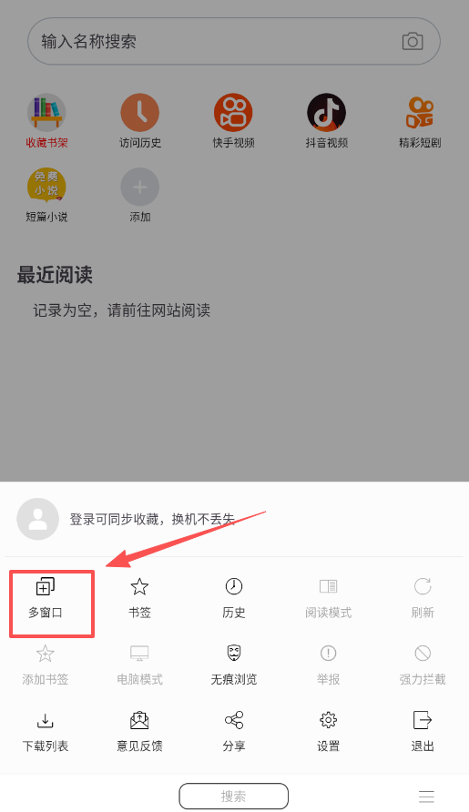2、屏幕下方的工具栏藏着实用功能,用“多窗口”同时打开多个内容,“书签”帮你记住关键位置。