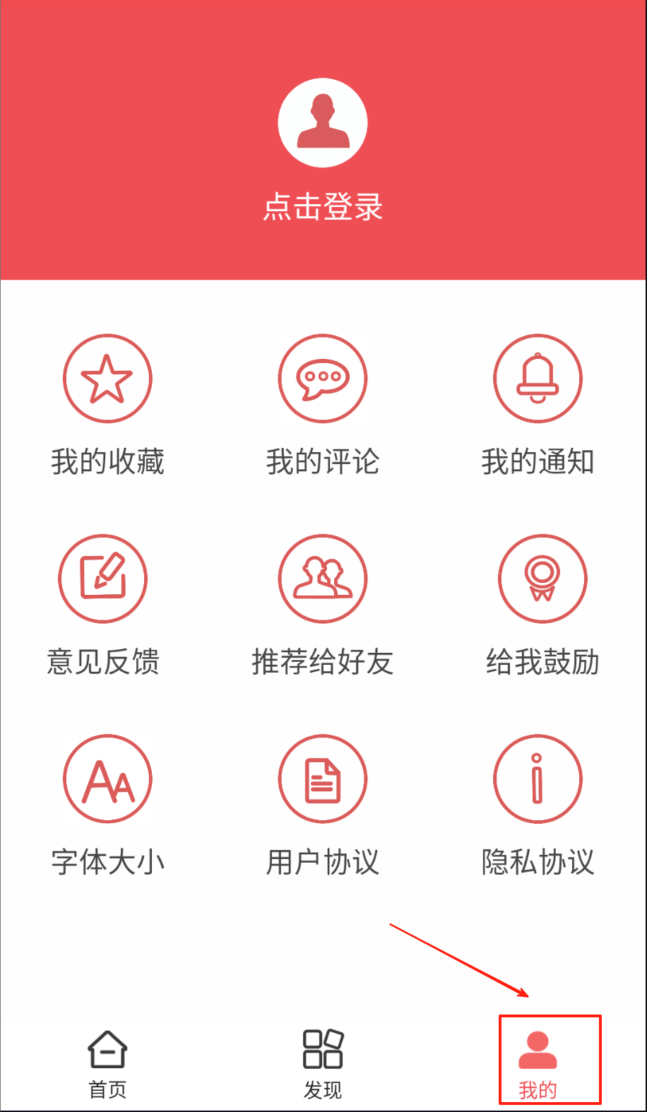 1、点击首页顶部点击登录完成账号注册,登录后底部我的模块可查看收藏内容和历史评论,还能在意见反馈提交使用建议。