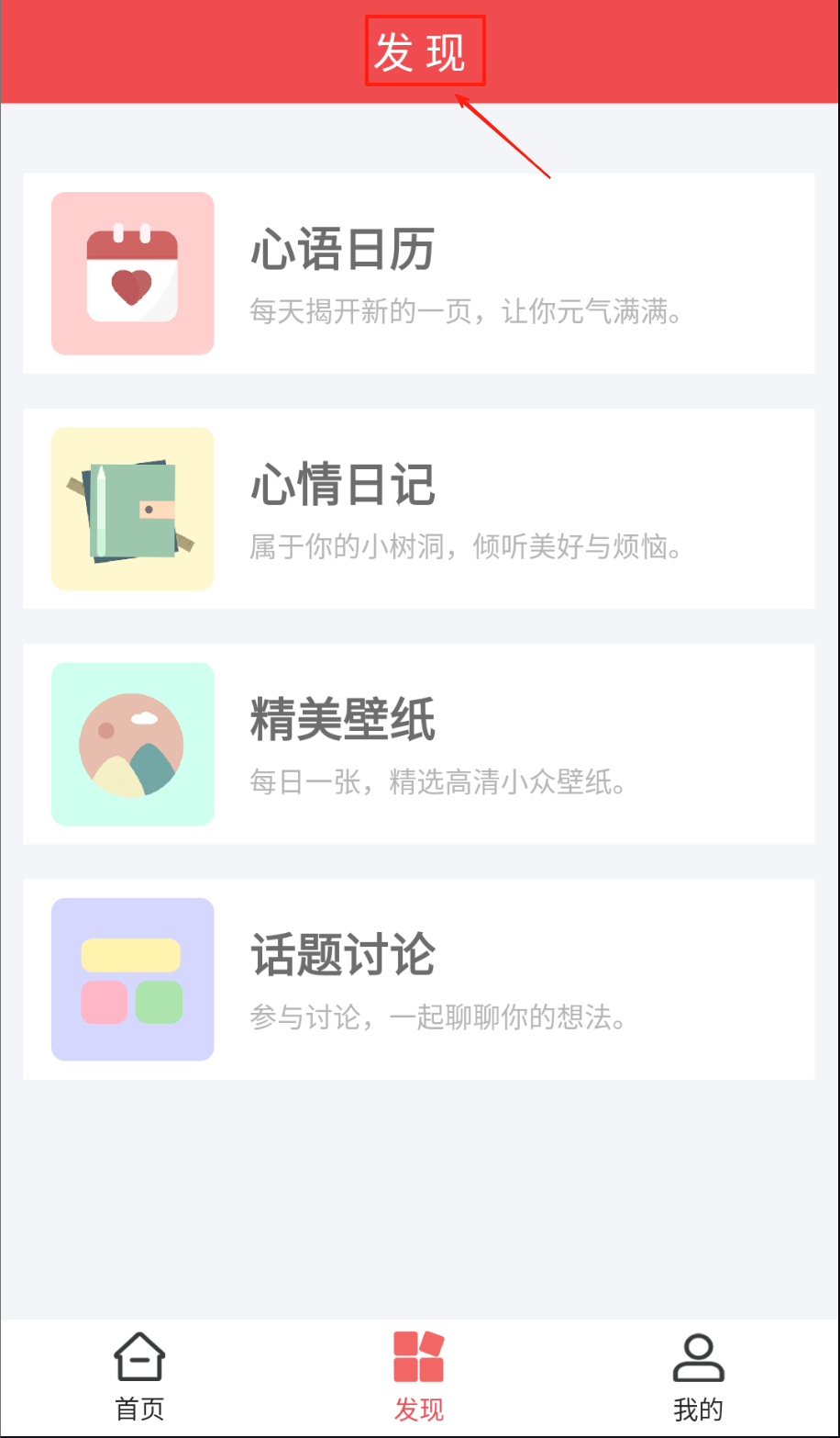 2、进入发现页使用心语日历获取每日箴言,通过心情日记记录生活点滴,在精美壁纸更换手机桌面提升视觉体验。