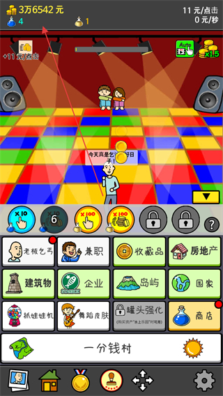 4、场景升级后,继续点击金币按钮获取更多收益,积累财富解锁更多玩法。