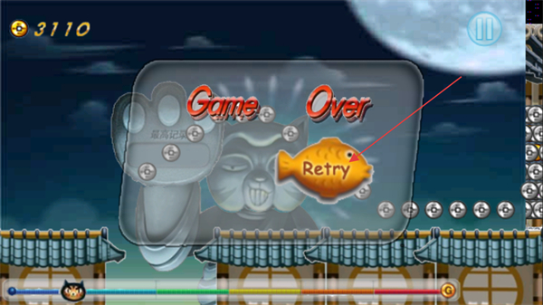 4、游戏结束后出现GameOver界面,点击Retry可重新开始游戏。