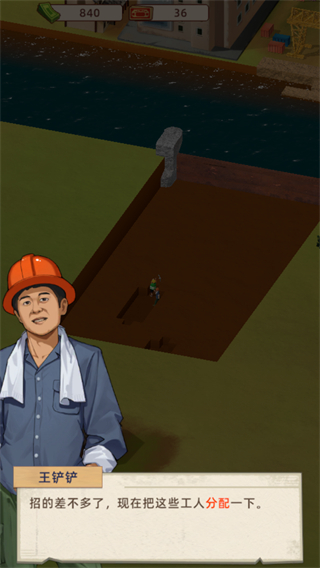 1、在施工界面,点击王铲铲角色触发其特长效果,配合加速按钮推进挖掘进度。