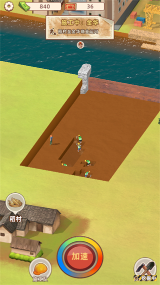 3、加速生效后,工人持续作业,等待加速倒计时结束,推进运河挖掘进度。