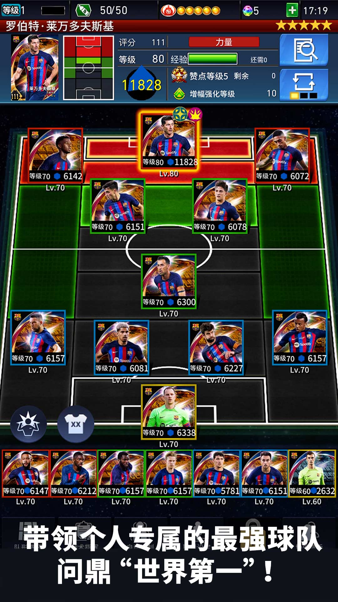 2、选出最强的11名队员,打造一个梦幻般的足球阵容;