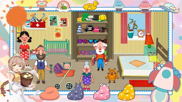 佩皮小镇假期生活是很适合小孩子玩的休闲模拟手游,整个画面都是以卡通形式呈现,里面的人物、动物以及房间、家具等等都很可爱,能够吸引小朋友的目光,通过游戏可以体验和家人看电视、做家务、逗宠物等趣味玩法。