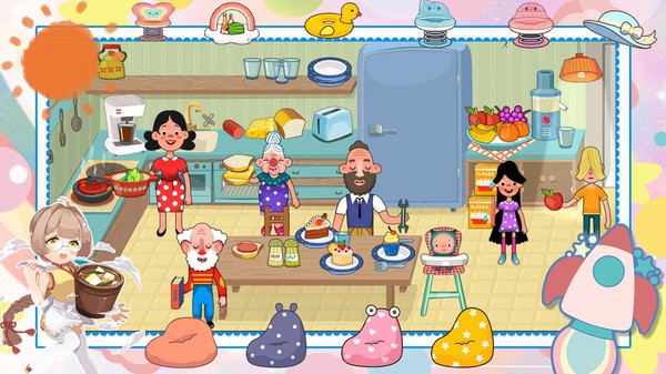 探索和创造您的虚拟家庭生活,带家人去厨房做饭。