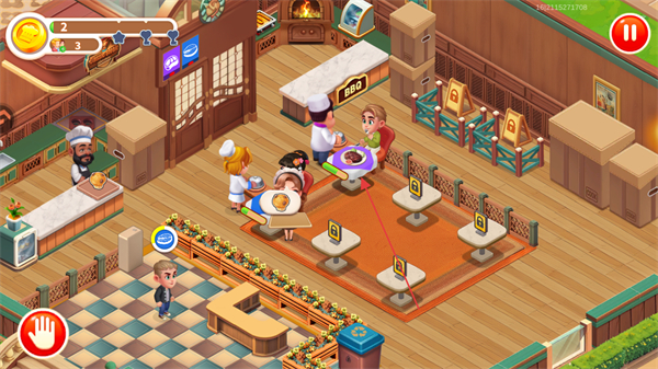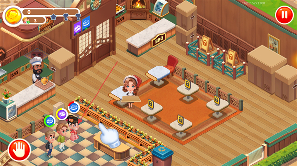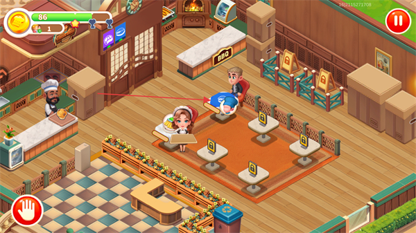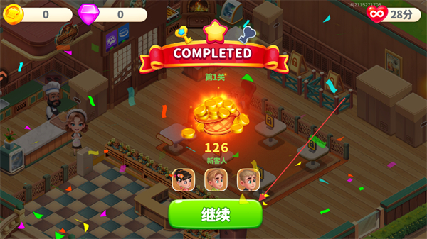 3、持续接待顾客、完成点餐-送餐流程,积累金币和关卡积分。