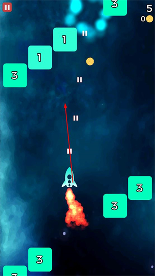 3、持续调整火箭移动轨迹,碰撞更多相同或不同数字的方块,积累分数和金币。