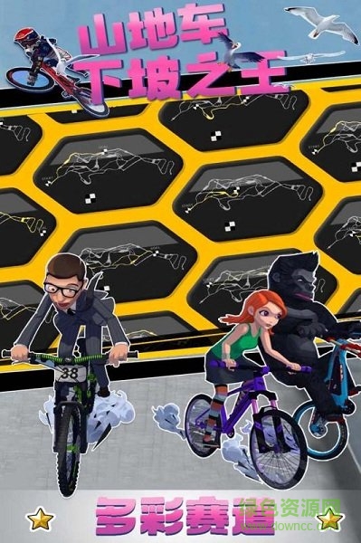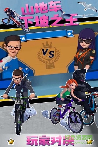 - 山地车下坡之王最新版有着超级惊险刺激的赛车比赛,你需要在这些赛车手中脱颖而出,成为下坡之王,游戏中的下坡道路非常的多,你需要控制自己的山地车进