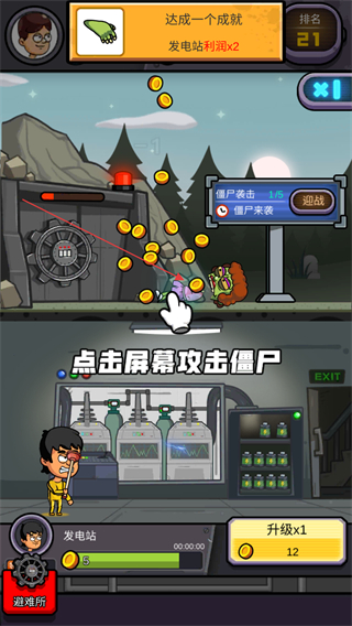 3、持续攻击僵尸,推进设施等级如发电站升到2级,达成成就解锁更多收益。
