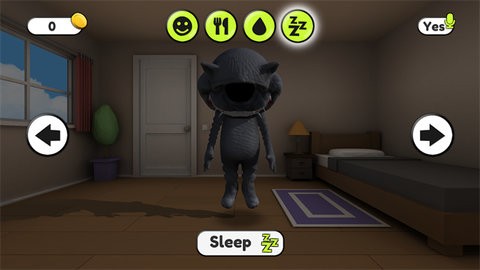 2、在主要介绍界面中你可以左右调节来去往不同的场合如吃饭、洗澡、睡觉、互动。
