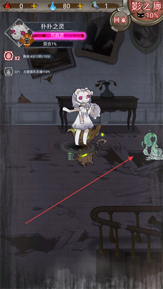 1、进入古堡影之廊关卡,操控角色在场景中移动,准备与怪物互动。
