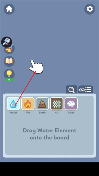 1、找到界面下方的水元素图标,将其拖动至上方的操作区域内,完成水元素的放置操作。