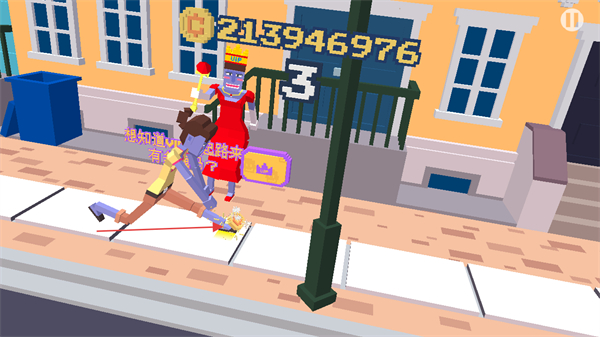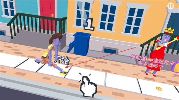 2、按提示滑动操作,控制角色在人行道上移动,躲避障碍推进进度。