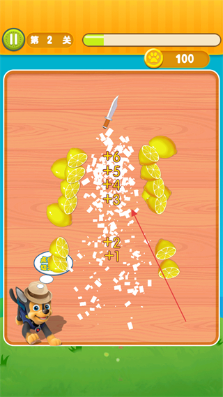1、在第1关中,滑动刀具切割柠檬,获取对应积分,推进关卡进度。
