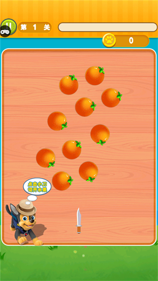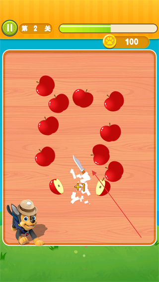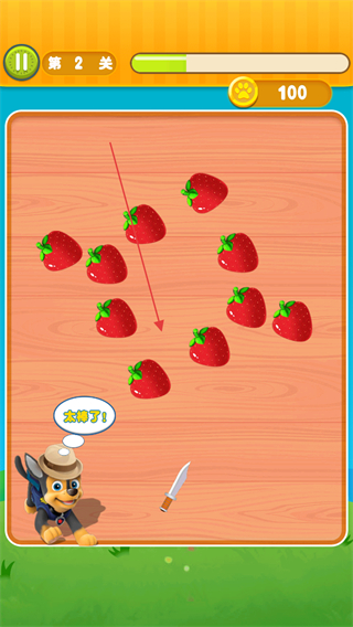 3、按提示滑动刀具,切割苹果等水果,积累积分,靠近通关条件。