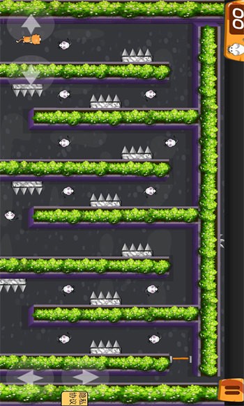 3、跳跃和移动躲避障碍,避免触碰尖刺,如果被猫咪追捕就会成为猫咪,游戏失败。