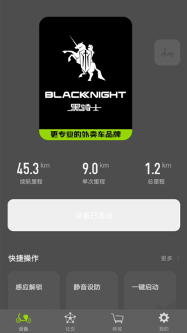 黑骑士作为一款电动车智慧互联管理软件,专为黑骑士电动车品牌的用户打造的一款APP,用户可以使用这款软件连接绑定自己的电动车,这样就能轻松掌握电动车的各项情况,车辆状态、行驶里程、电量情况等,并且用户还能用该软件一键锁车、一键开锁启动。
