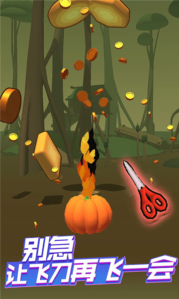 游戏的目标是刺穿所有的目标,这些目标可以是各种材质的标靶和强大的BOSS。只需要一根手指控制,点击将飞刀抛起并旋转,再次点击将它发射。如果抛空了就会损失生命!如果收集更多靶子周围的金币,这样你就能从商店买到更酷的刀、剑和匕首。