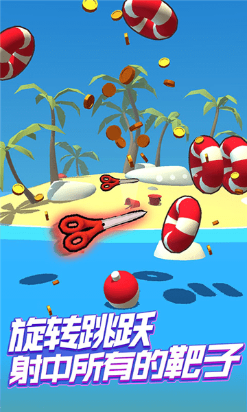 旋转跳跃,射中所有的靶子。别急,让飞刀再飞一会。成为最强飞刀手吧。