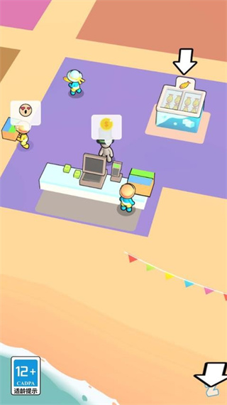 采用可爱的卡通角色形象,搭配直观的俯视图游戏视角,玩家可清晰掌控店铺全局,还能添加多种卡通角色协助管理店铺,让经营更有趣味。