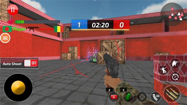 2、移动走位寻找敌方位置,持续射击提升得分,推进对局分数进度。