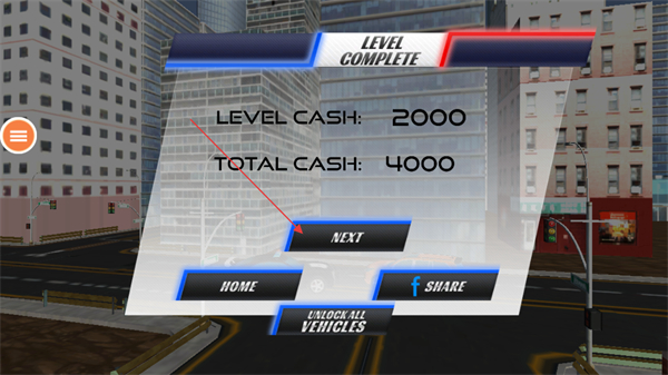 4、关卡完成后,点击NEXT进入下一关,继续体验警车追击玩法。