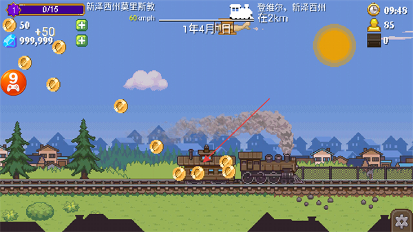 3、火车行驶过程中收集金币,积累资源,提升当前金币数量,为后续升级做准备。