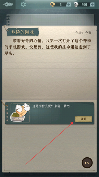 1、点击开始进入危险的游戏关卡,开启海龟蘑菇汤的解谜流程。