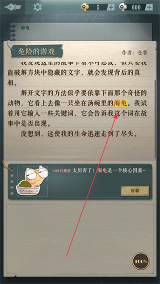 3、查看海龟给出的提示,解锁文段中的隐藏内容,完成该轮解谜。
