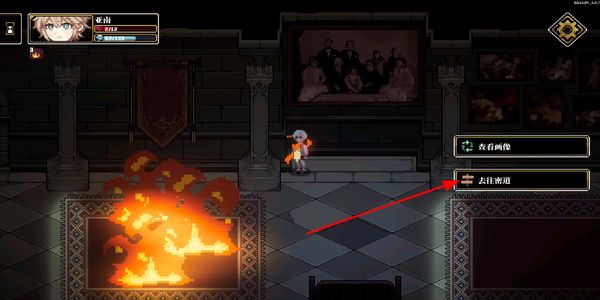 4、与场景中的选项交互,选择去往密道的指令,进入新的探索区域,继续推进游戏的剧情与探索流程。
