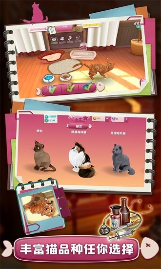 《撸猫模拟器》是一款非常有爱的手机猫咪游戏,该游戏中玩家是帮助暂时代替照顾别人的妈咪,从这一刻起,你也是有猫咪的人了,是猫奴们幸福的时光,旅店中有很多猫咪,你要帮助铲屎,喂食,逗猫,照看家具等等,猫咪非常可爱,喜欢的可以下载撸猫模拟器游戏体验!