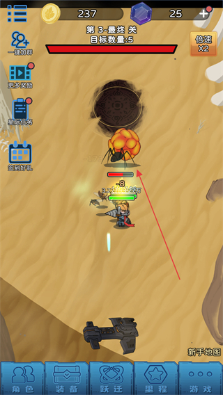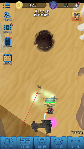 1、进入3-1关,操控队员自动攻击场景中的敌方目标,完成3个目标的清理。
