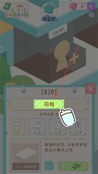 操作流程简单易懂,没有复杂的经营规则,只需专注于房屋升级和租金收取,闲暇时间随手点开就能体验,适配碎片化的游玩节奏。