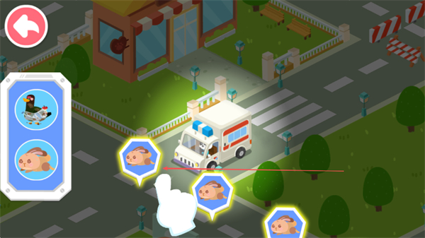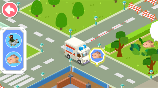 1、选择救援目标如小猪,操控救护车向目标位置移动。