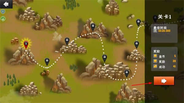 2、在关卡选择界面点击右侧的箭头按钮,进入关卡1的准备界面等待进入游戏。