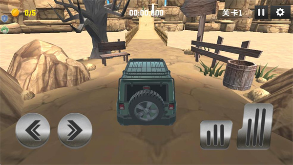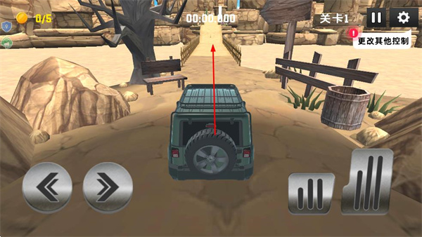 3、在关卡1的驾驶界面操作右侧的踏板控制车辆前进,沿着道路向目标方向行驶。