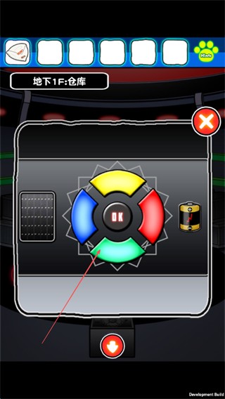 1、在地下1F仓库,互动彩色圆盘装置,进入道具操作界面。