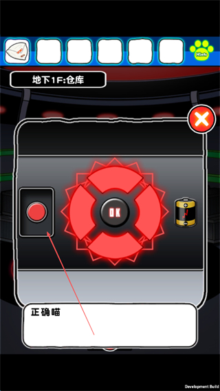3、操作后装置显示红色,出现正确喵提示,完成装置解锁。